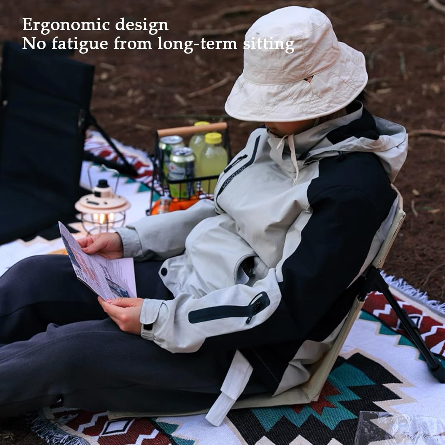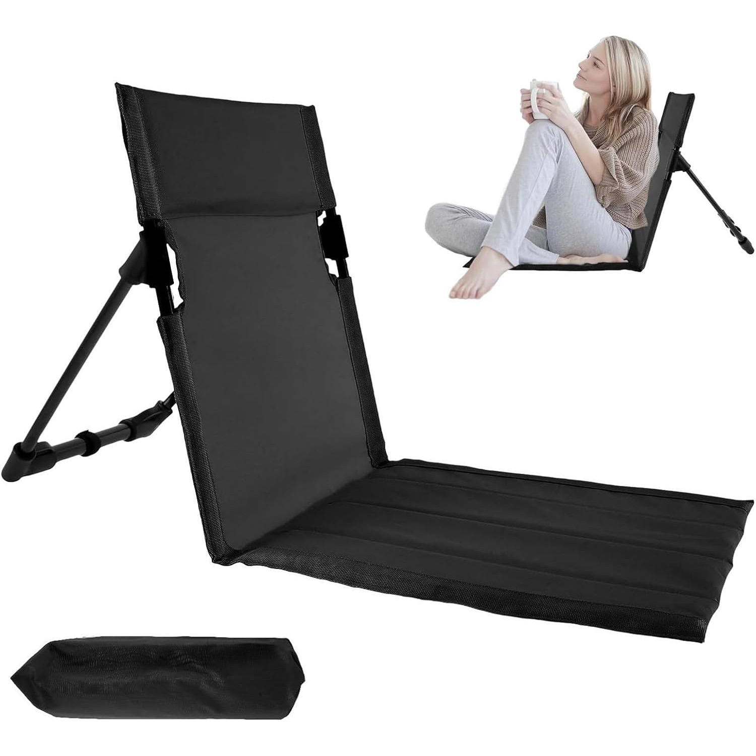 Chaise pliante de camping légère et confortable avec dossier pour l'extérieur, la pêche, se prélasser sur la plage, le jardin en utilisant une chaise de sol portable idéale avec support dorsal, conception portable avec tube en aluminium